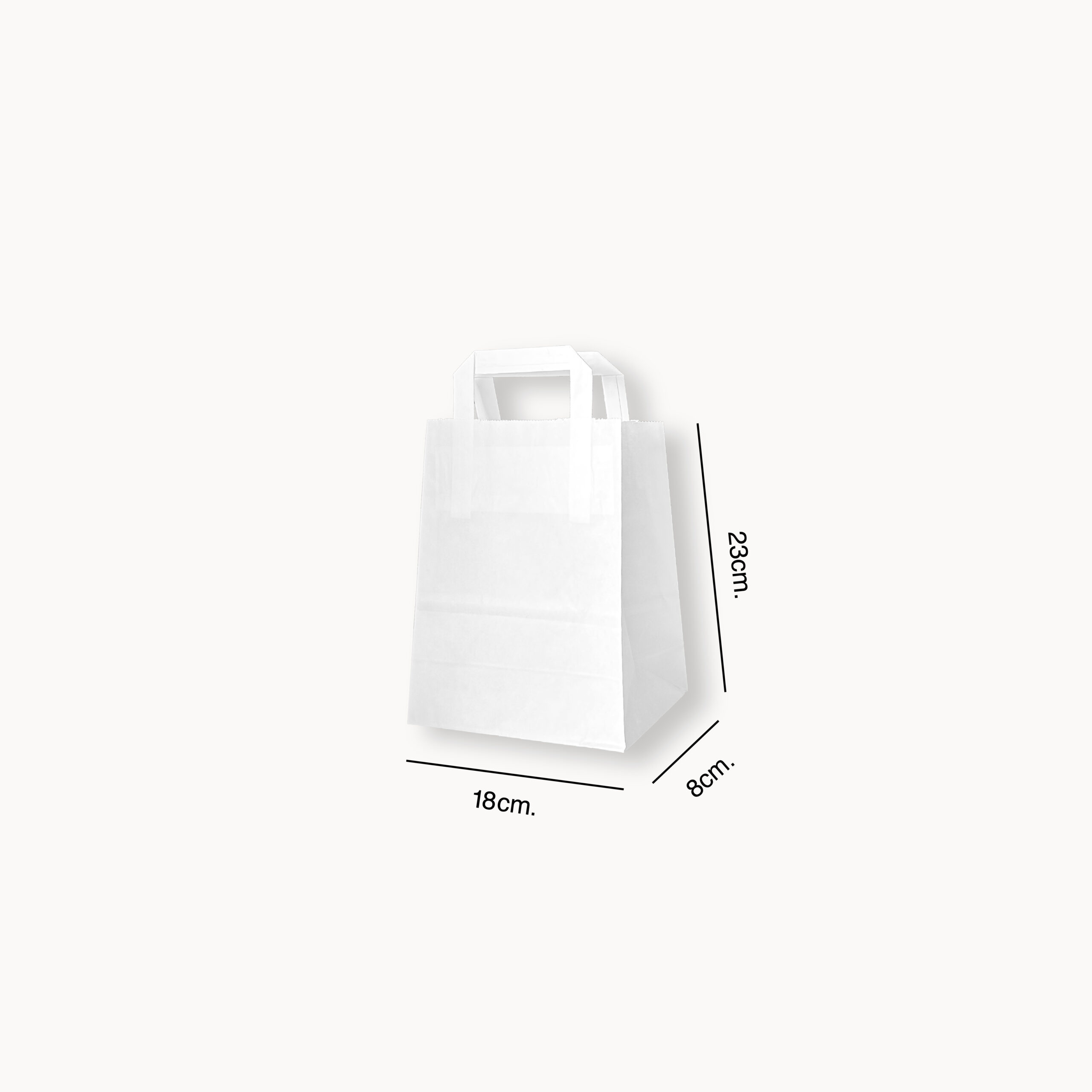 La EcoBolsa Asa Plana Blanca XS es una alternativa compacta, elegante y sostenible para productos pequeños que requieren una presentación cuidada. Con medidas de 18 x 8 x 23 cm, es ideal para cosméticos, joyería, snacks, frascos, tarjetas o recuerdos livianos.